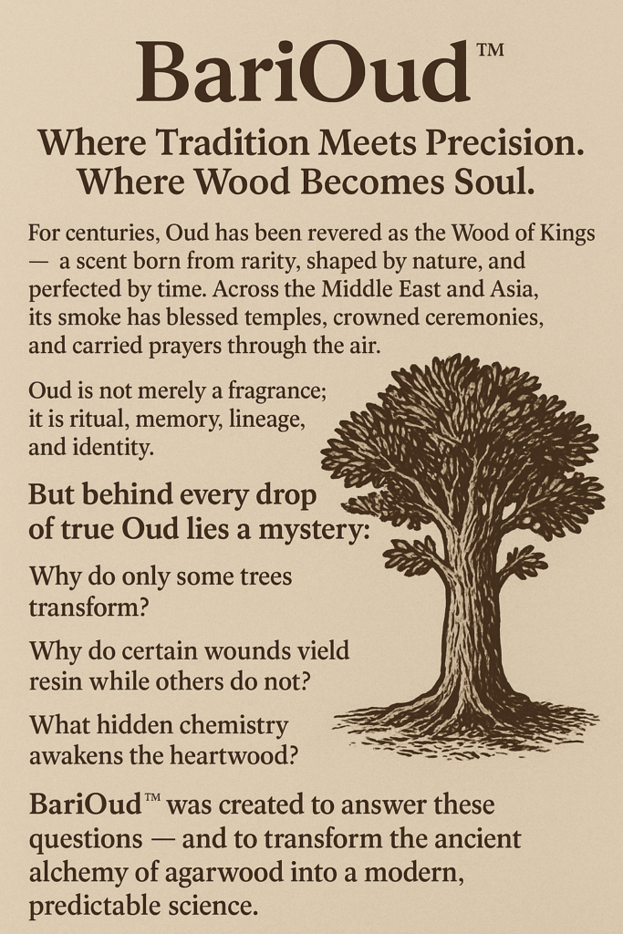 BariOud™ was created to answer these questions — and to transform the ancient alchemy of agarwood into a modern, predictable science.