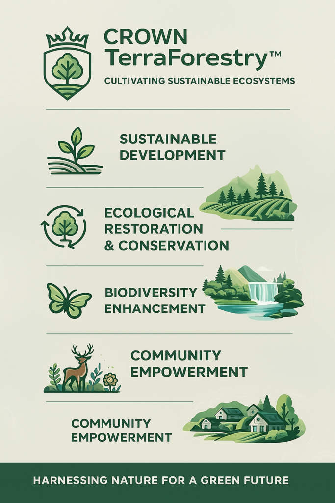 Crown TerraForestry™ stands for a new standard of agroforestry — one where sustainability is not a concept but a daily practice, and where land becomes a living legacy.